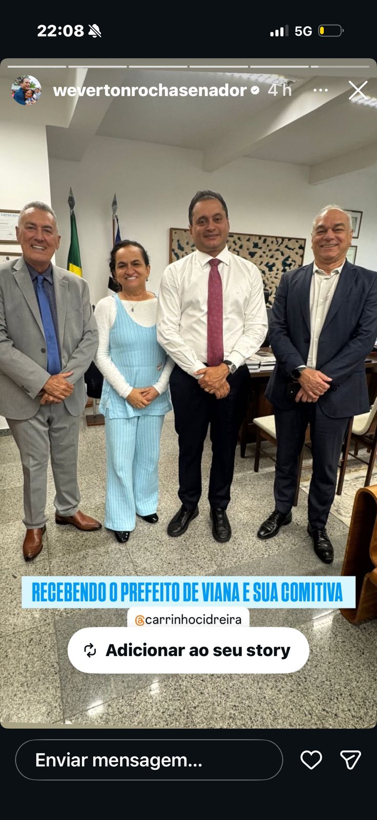 O prefeito de Viana, Carrinho Cidreira, recebeu o governador do Maranhão, Carlos Brandão, e reafirmou, junto com todo o seu grupo político e vereadores da