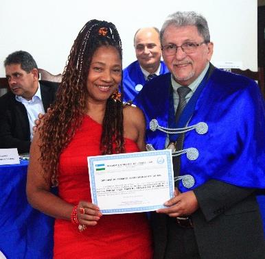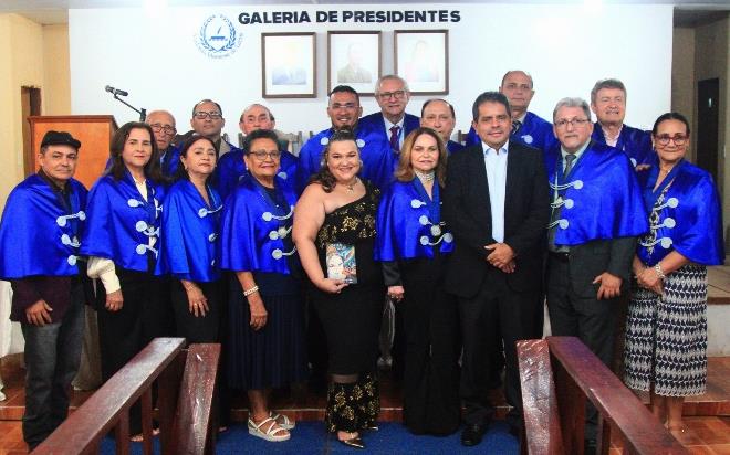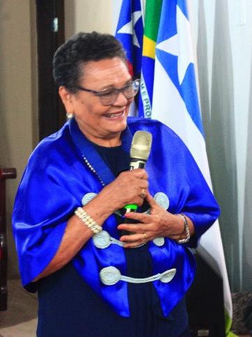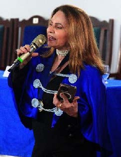 A Acadêmica da AVL e Corregedora-Geral do MPMA Fátima Travassos proferiu a leitura da biografia do Procurador-Geral de Justiça, de forma poética, retratando seus aspectos pessoais, origem, dados profissionais e conquistas.