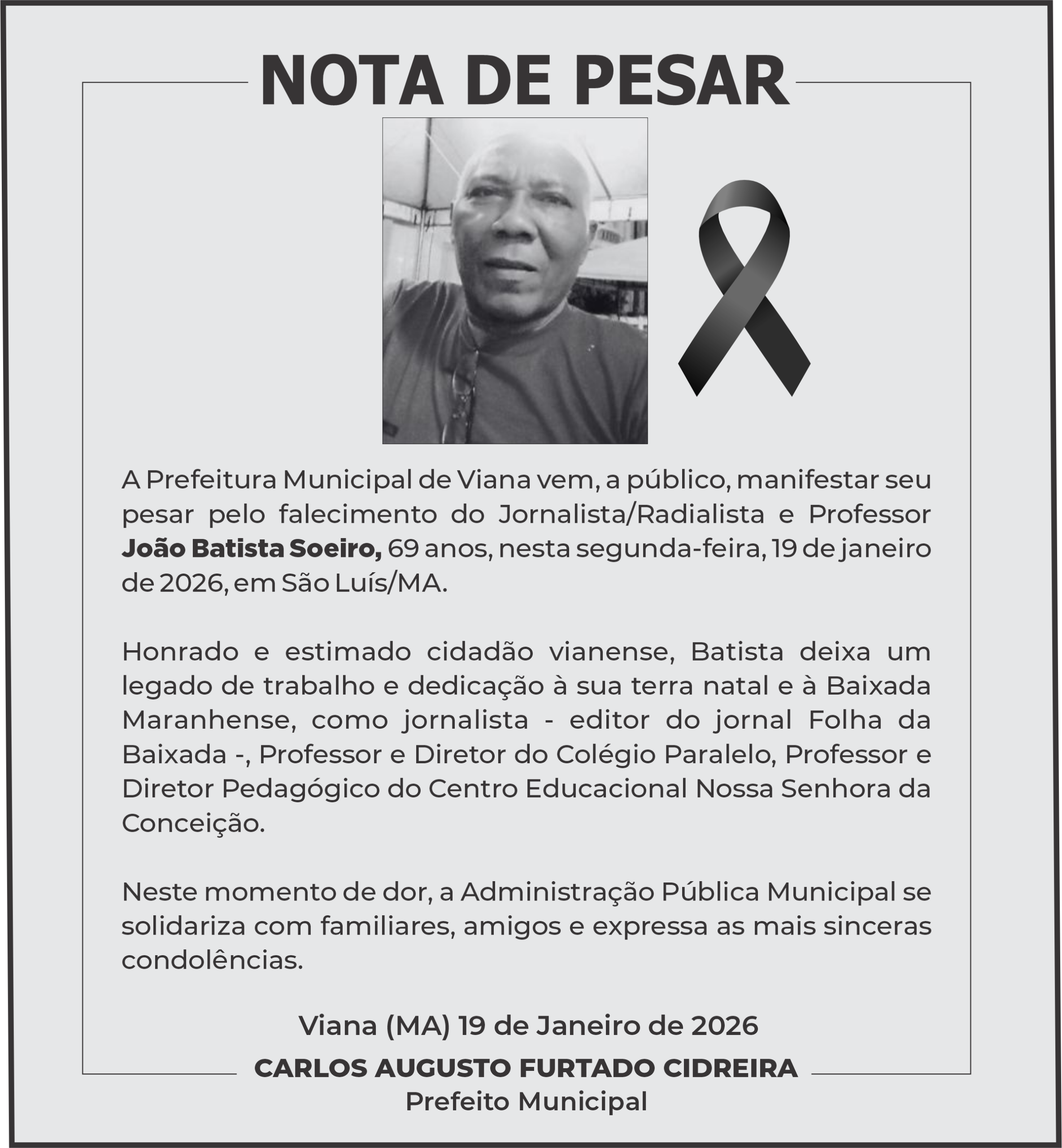 O jornalista João Batista Soeiro morreu, na manhã desta segunda-feira (19), aos 69 anos, devido a problemas decorrentes do diabetes. Ele estava interno no Hospital dos Servidores, em São Luís, onde realizava tratamentos contra a doença.