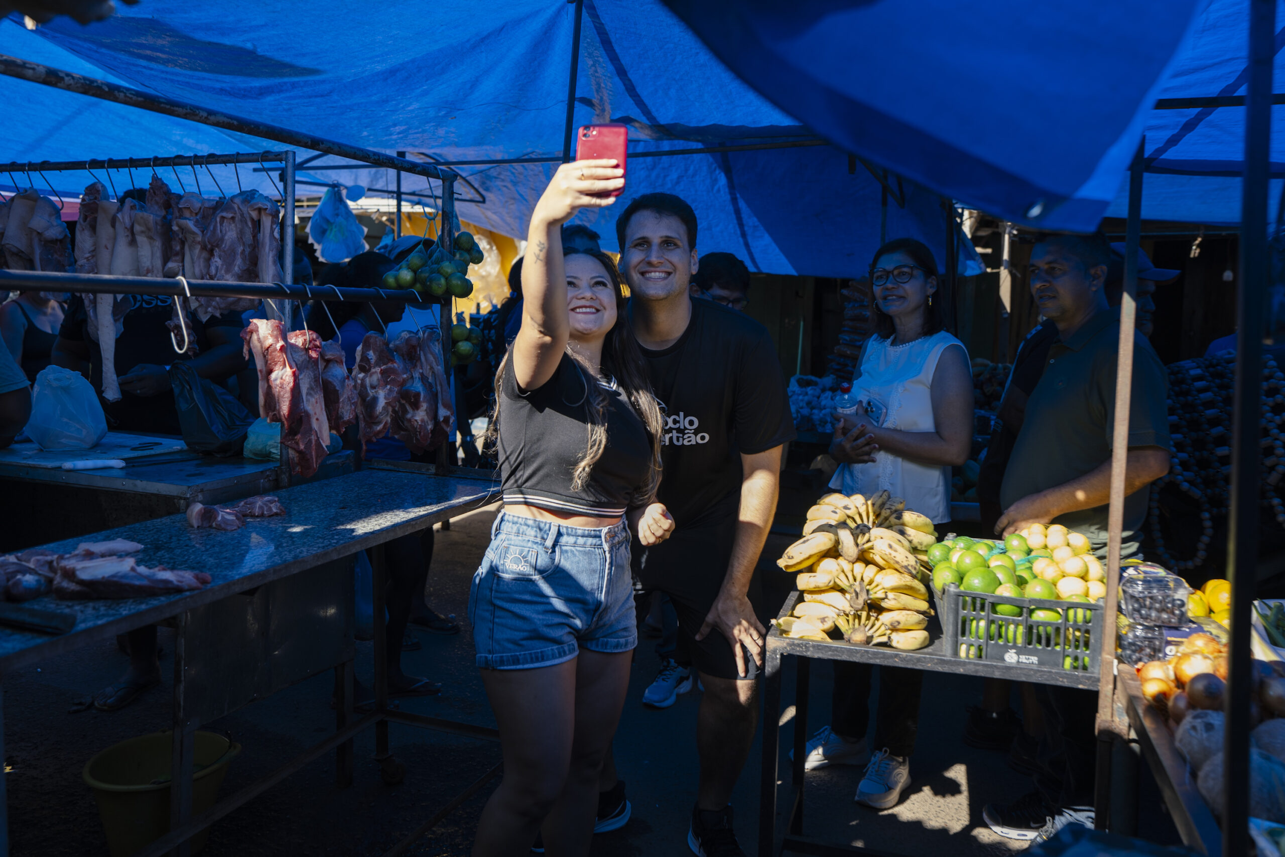 Ele iniciou o passeio pela tradicional Feira do Bom Sucesso, onde experimentou iguarias regionais e interagiu com feirantes.