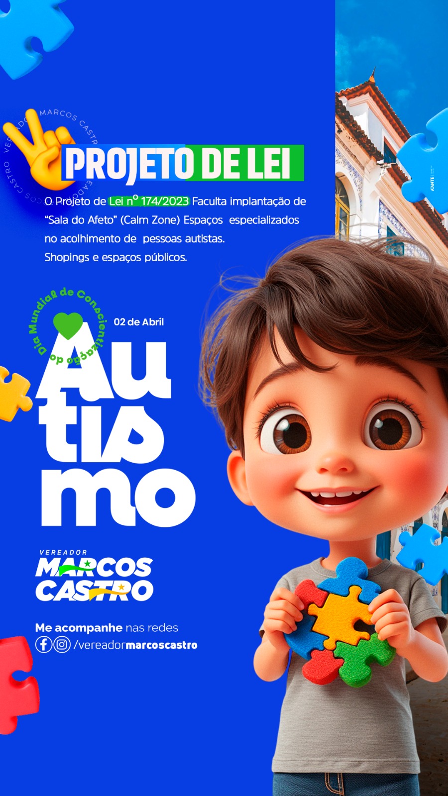 DIA INTERNACIONAL DO AUTISMO. Vereador Marcos Castro propõe projeto de lei para criação de “Calm Zone” para pessoas autistas