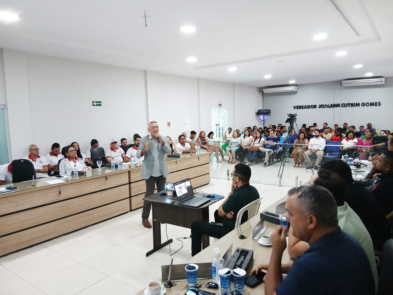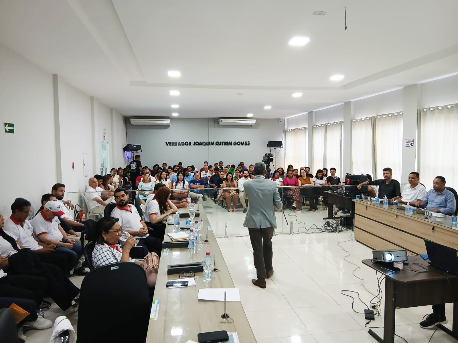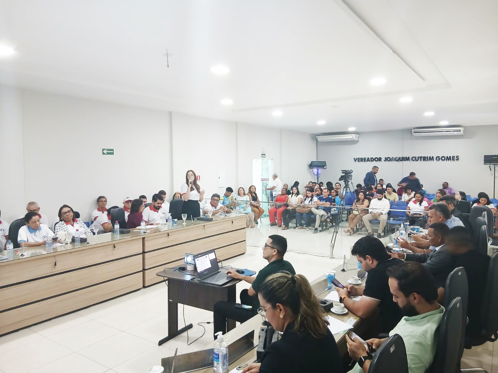 O evento foi realizado no plenário da Câmara Municipal e contou com a presença de vereadores, secretários, servidores, assessoria contabil e cidadãos interessados na gestão das finanças do município.
