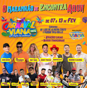 A Prefeitura de Viana inicia, nesta quarta-feira (7), o maior Carnaval da história do município. Pela primeira vez, a cidade terá uma semana de folia, com atrações de destaque regional e nacional.